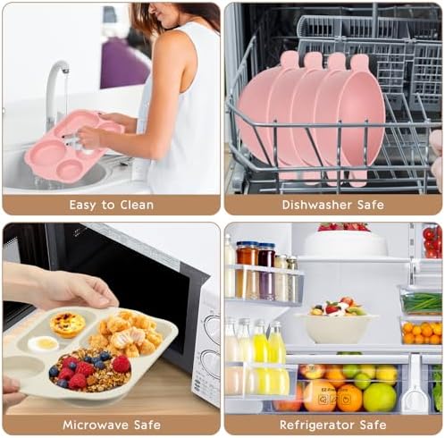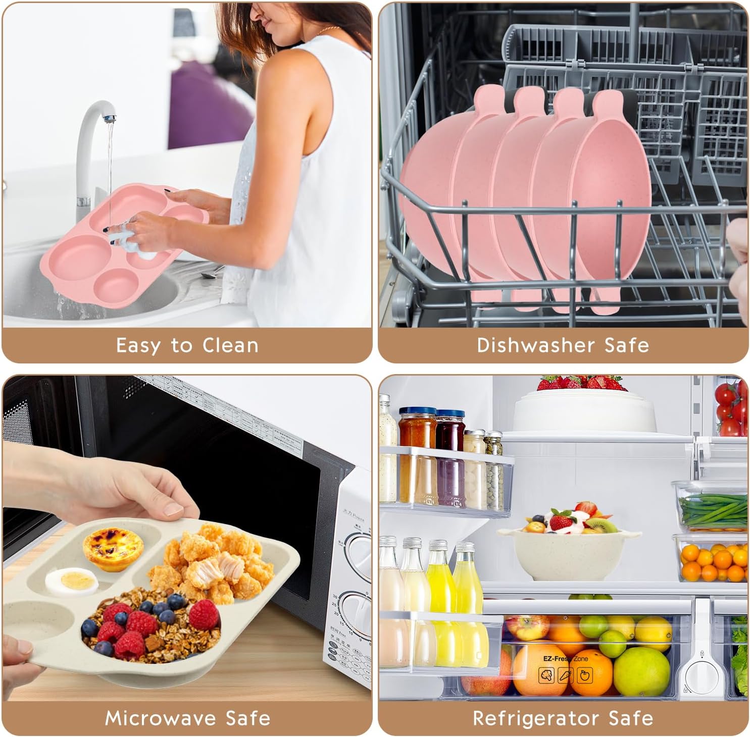 Experience the perfect mealtime experience with this 24-Piece dinnerware set. It's BPA-free, microwave and dishwasher safe, non-toxic, and designed with style that works. Divided plates ensure portion control, and the natural wheat straw and food-safe PP material keep meals looking as good as they taste. Simple, durable, and child-friendly design that makes mealtime an exciting experience every time.