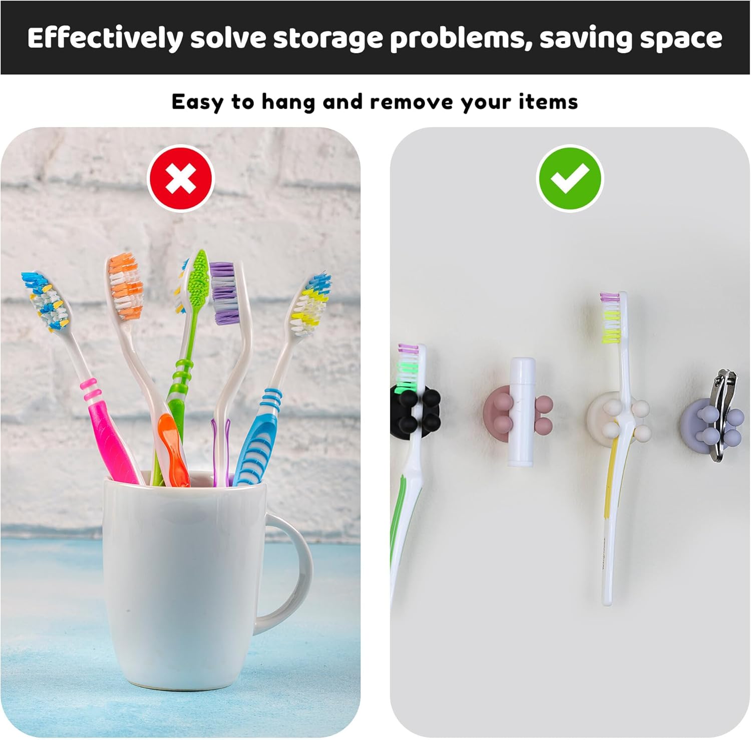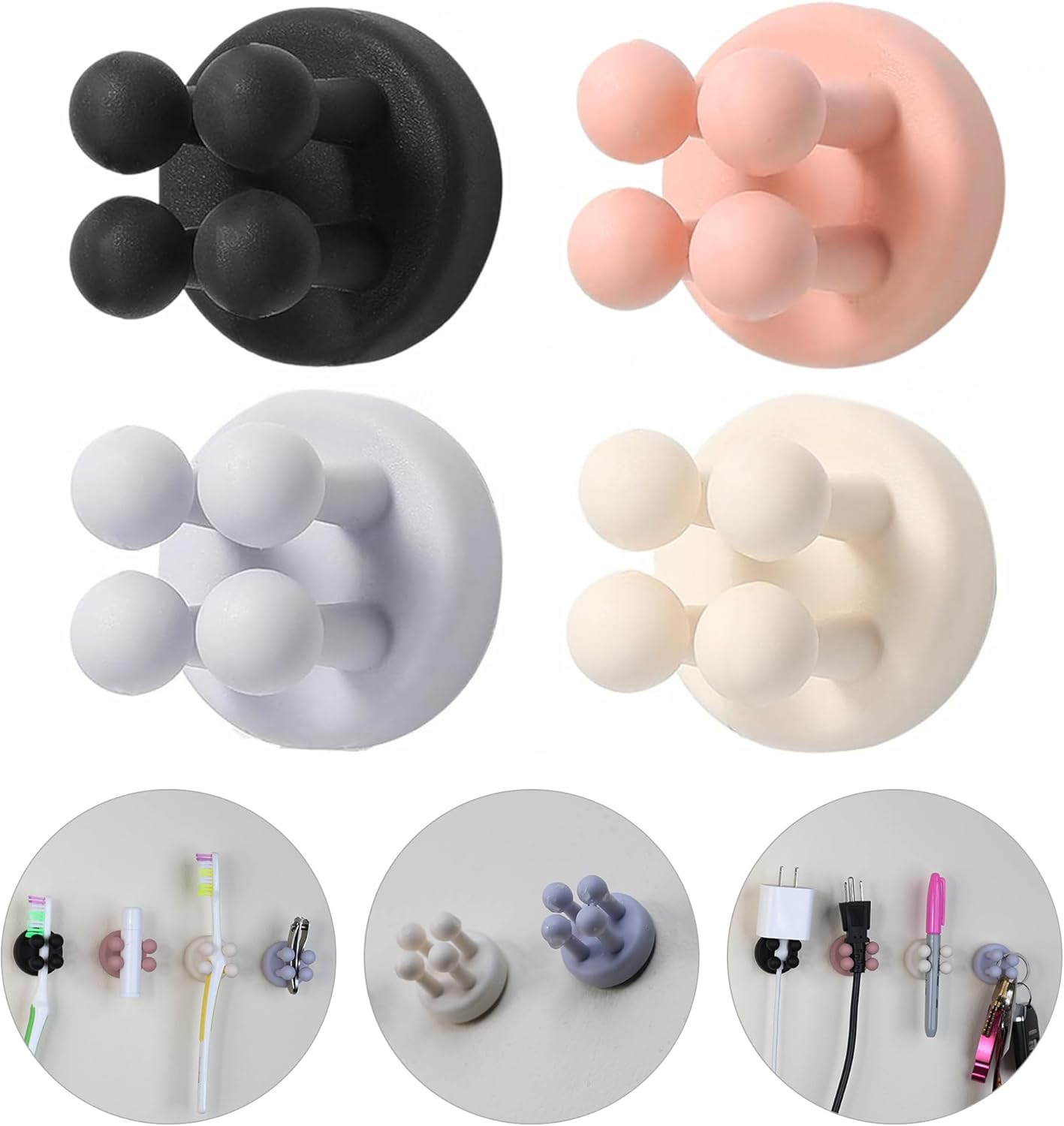 Stay organized and neat with this compact 4-pack of self-adhesive silicone holders. Perfect for razors, toothbrushes, and towels, they're waterproof, durable, and easy to use. Best in any bathroom, kitchen, or living room for efficient space-saving.